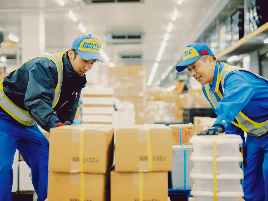 実際の現場で働くドライバーの責任者(班長さん)が、皆さんと一緒に出社からトラックの点検、商品の積込、配送ルートの説明などを含め業務全般をサポートします。最初は班長さんが運転します。