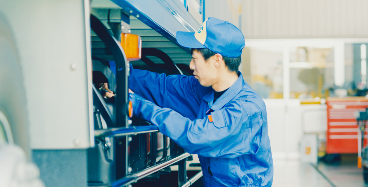 トラックや冷凍機を点検し、不良箇所を発見し、修理や部品の交換をし、荷物が運べるようにします。また、基準に沿って保守整備を行い故障を未然に防ぎます。